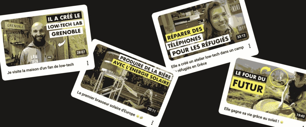 Grâce à ma chaîne YouTube Vivre Low-Tech et grâce à mon métier, j’accompagne et interviewe celles et ceux qui innovent dans les marges. Des porteur·euse·s de projets dans la sobriété, l’économie circulaire, l’ESS ou la protection du vivant…